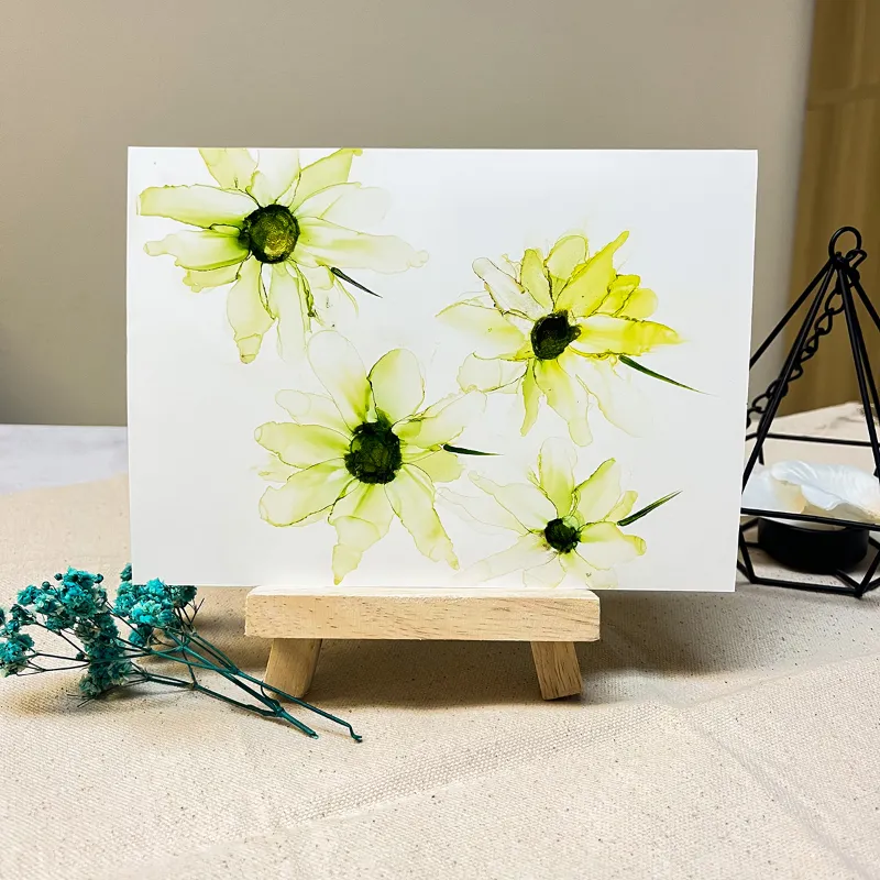 酒精墨畫隨時可以修改,當你以為作品要失敗了的時候,它又會給你驚喜。酒精畫可以成為掛畫、枱畫、鏡盒、小物盤、六角…
